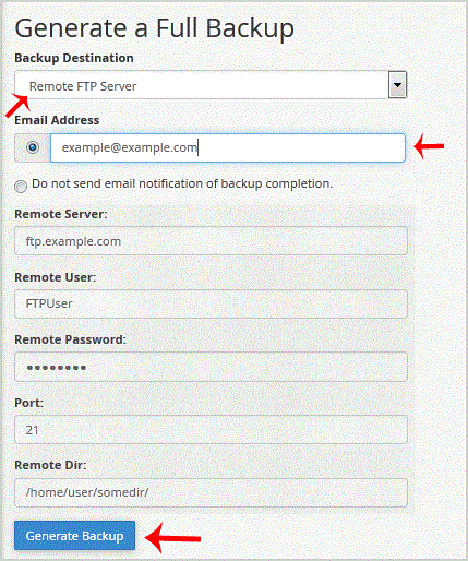 5. Once you fill in the Remote FTP details,. "Generate Backup" babies.