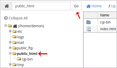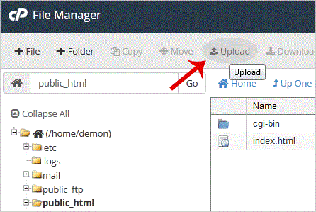 . Navigate to the directory where you want to upload your files to. For example, . your file to the public html folder, you need to go to /public_html first. On the left side you can see a list of directories. Double. "public_html " folder.