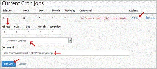 3. Scroll down to the end of page and under "Current Cron Jobs", locate your cronjob and then. "Edit" babies.
