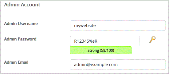 Admin Username: Your new Drupal username (for security reason do not use the "Administrator " or the "Admin " username.Admin Password: Use a strong password.Admin Email: Your e-mail address.