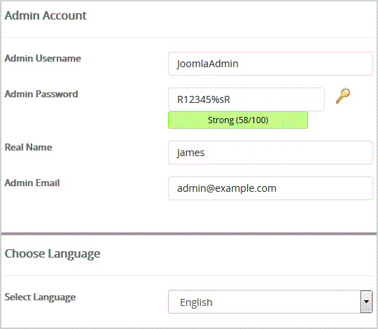 • Admin Username: Your new Joomla username (for security reason do not use the "Administrator" or the "Admin" username.)