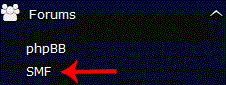 . On the left side of your screen you should locate the "Forums" category. Click on it and then. "SMF" link that will appear.