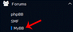 . On the left side of your screen you should locate the "Forums" category. Click on it and then. "MyBB" link that will appear.
