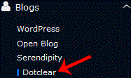 . On the left side of your screen you should locate the "Blogs" category. Click on it and then. "Dotclear" link that will appear.
