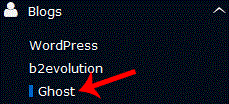 . On the left side of your screen you should locate the "Blogs" category. Click on it and then. "Ghost" link that will appear.