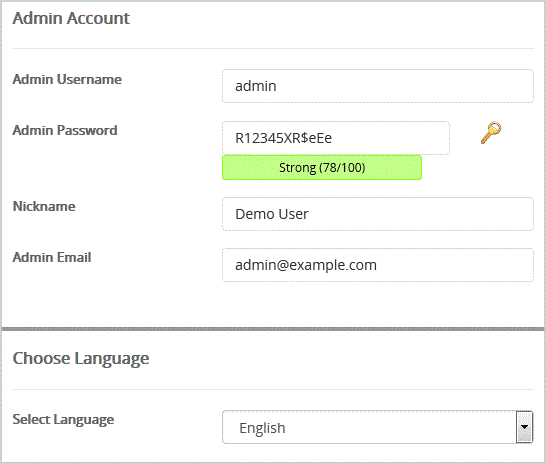 - Admin Username: Your new PivotX username (for security reason do not use the "Administrator" or the "Admin" username.)