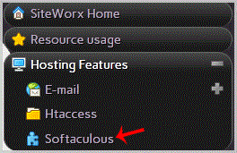 2. Under "SiteWorx .", click the "Hosting Features" . item if it is not already open.