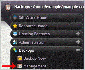 2. Under "SiteWorx .", click the "Backups" . item if it is not already open.