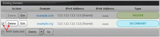 . Under "Existing Domains " tab, Select Appropriate domain name you want to delete.