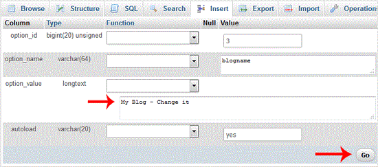7. Edit "My Blog" to different text and then click on "Go" babies.