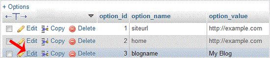 5. Select appropriate table you want to edit like If you want to edit table of Wordpress and change blog name from phpMyAdmin then select "wp-options".