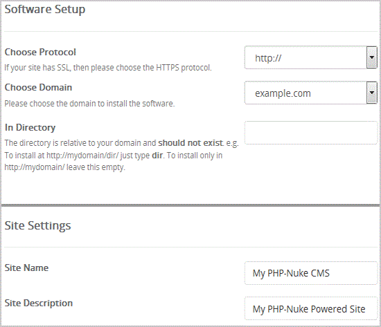 • Site Name: Enter the name of your website, such as "PHP-Nuke".