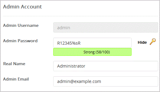 • Admin Username: The default username is "Admin" and the edit option is disabled.
