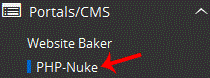 . On the left side of your screen you should locate the "Portal/CMS" category. Click on it and then. "PHP-Nuke" link that will appear.