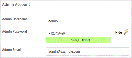 • Admin Username: Your new Subrion username (for security reason do not use the "Administrator" or the "Admin" username.)