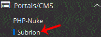 . On the left side of your screen you should locate the "Portal/CMS" category. Click on it and then. "Subrion" link that will appear.