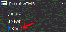 3. cpanel will redirect you to the Softaculous Panel.. On the left side of your screen you should locate the "Portal/CMS" category. Click on it and then. "Kliqqi" link that will appear.