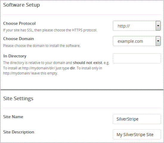 • Site Name: Enter the name of your website, such as "SilverStripe".