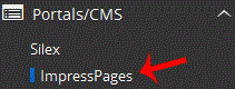 . On the left side of your screen you should locate the "Portal/CMS" category. Click on it and then. "ImpressPages" link that will appear.