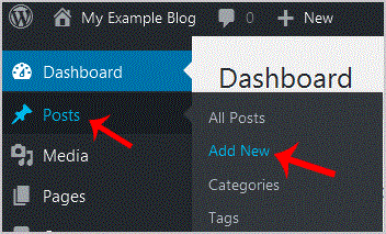 2. Under the dashboard ., hover your mouse on Posts and then click on "Add New".