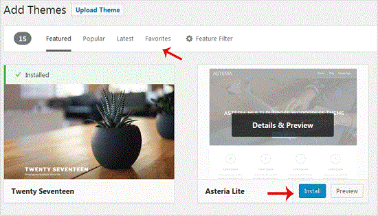 . In Add themes page, you can search for a theme or browse the themes from "Featured", "Popular", "Latest" options. If you hover your mouse over any themes, you will be presented with two options - "Activate" and "Live Preview".