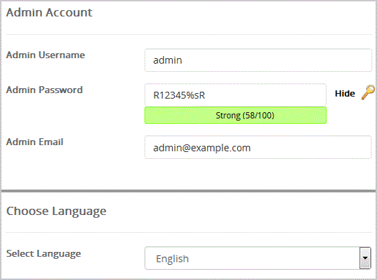 - Admin Username: Your new Kirby username (for security reason do not use the "Administrator" or the "Admin" username.)