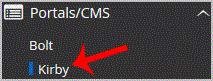 3. cpanel will redirect you to the Softaculous Panel.. On the left side of your screen you should locate the "Portal/CMS" category. Click on it and then. "Kirby" link that will appear.