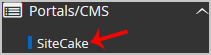. On the left side of your screen you should locate the "Portal/CMS" category. Click on it and then. "SiteCake" link that will appear.