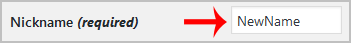 3. Locate "Nickname" and enter your new name.