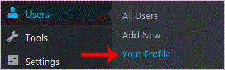 2. Under the dashboard ., hover your mouse over "Users" and then click on "Your Profile".
