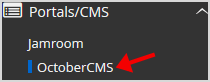 . On the left side of your screen you should locate the "Portal/CMS" category. Click on it and then. "OctoberCMS" link that will appear.